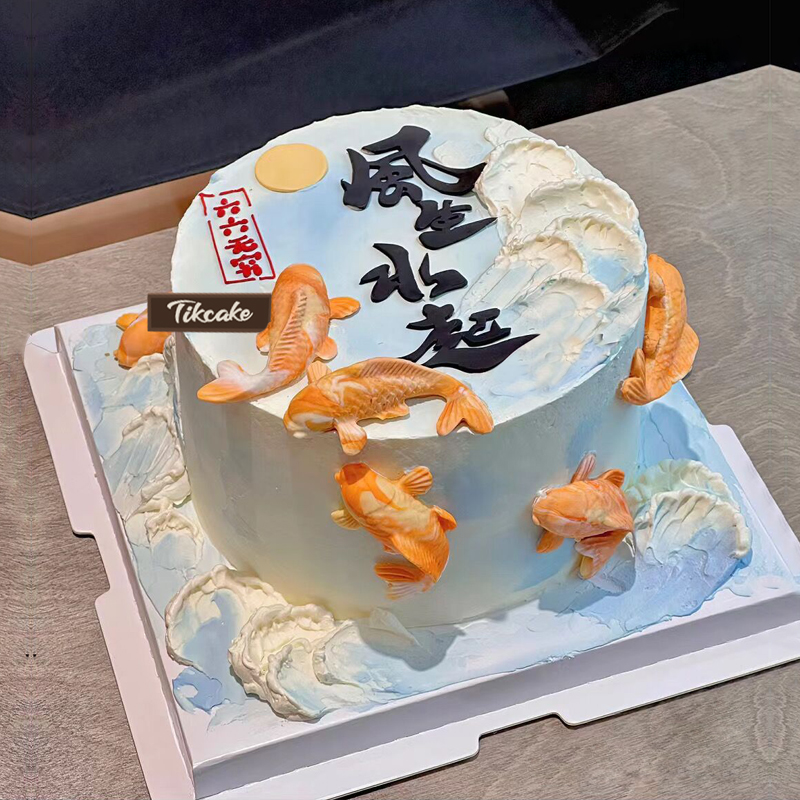 原创锦鲤主题翻糖鲜奶蛋糕