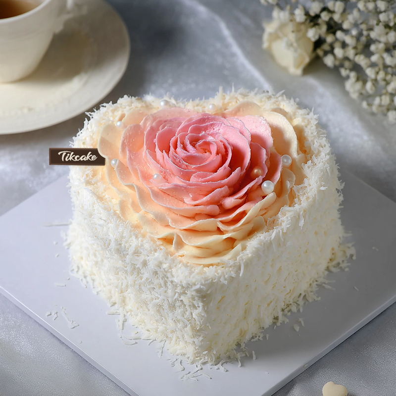原创渐变粉色心形鲜奶蛋糕