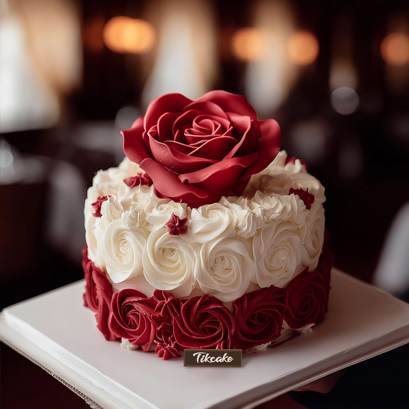 原创红玫瑰主题翻糖蛋糕