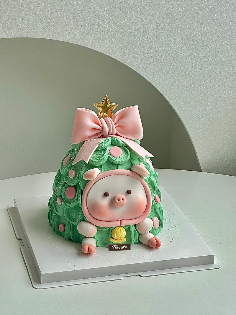 圣诞风lulu猪主题翻糖鲜奶蛋糕