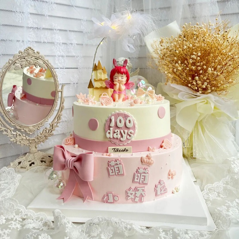 女宝宝百天双层翻糖蛋糕-j9旗舰厅