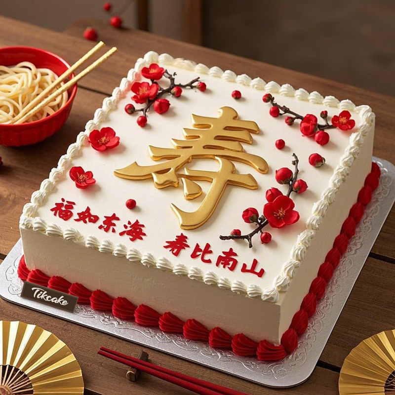 原创祝寿主题方形翻糖鲜奶蛋糕-j9旗舰厅