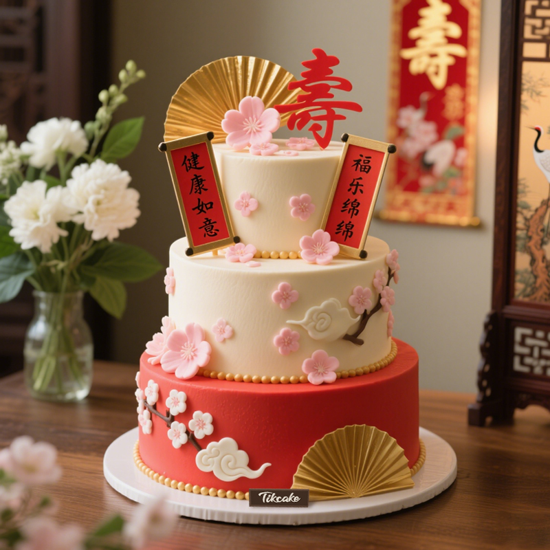 原创祝寿主题三层鲜奶蛋糕
