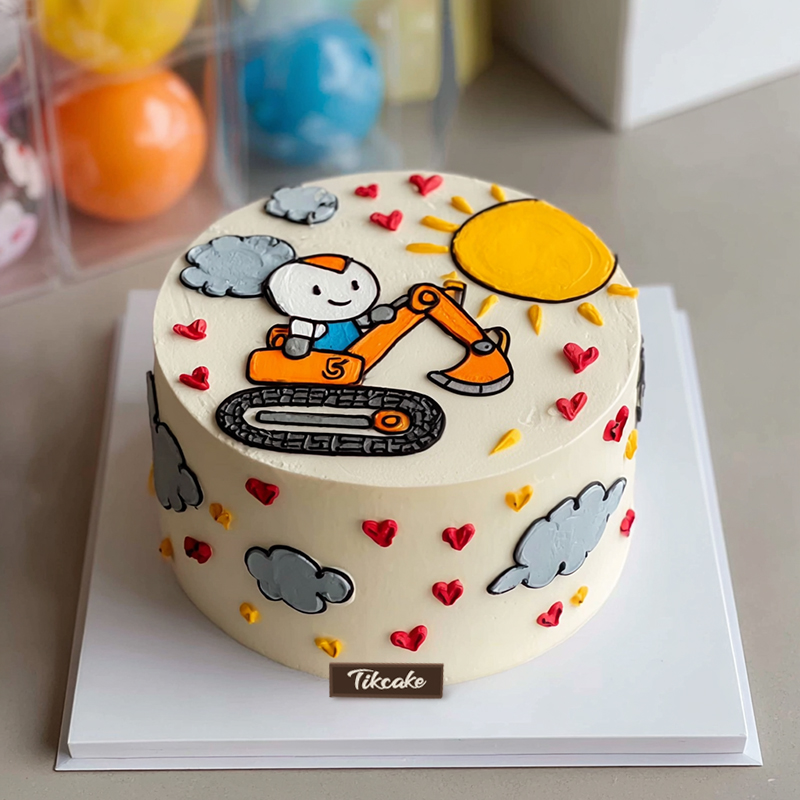 原创挖挖机主题儿童鲜奶蛋糕(三)