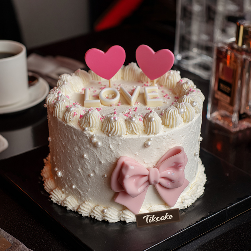 原创公主风爱心主题翻糖鲜奶蛋糕