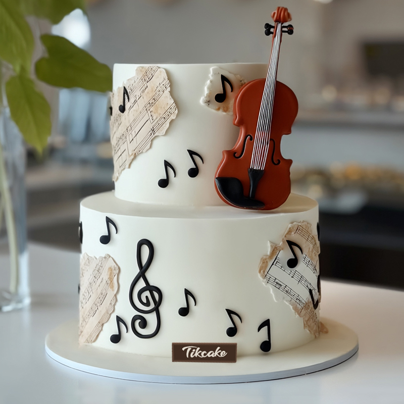 原创小提琴主题双层翻糖鲜奶蛋糕-j9旗舰厅