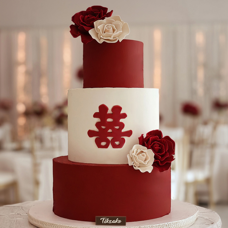 原创婚庆主题三层翻糖鲜奶蛋糕(二)-j9旗舰厅