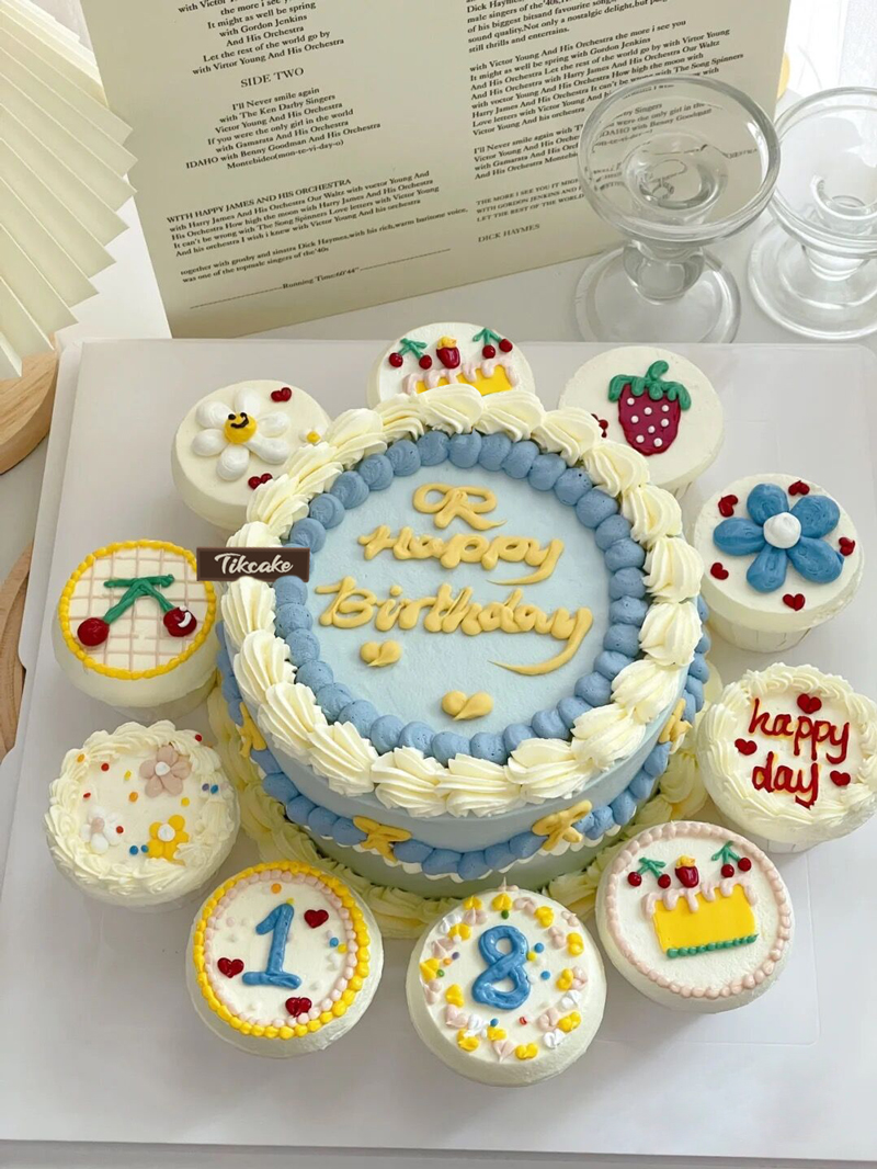 简约男生版手绘鲜奶蛋糕(含10个纸杯蛋糕)-j9旗舰厅