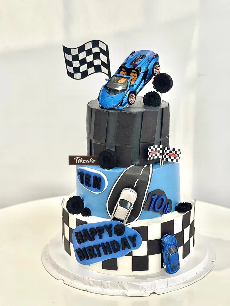 三层小汽车主题翻糖鲜奶蛋糕-j9旗舰厅