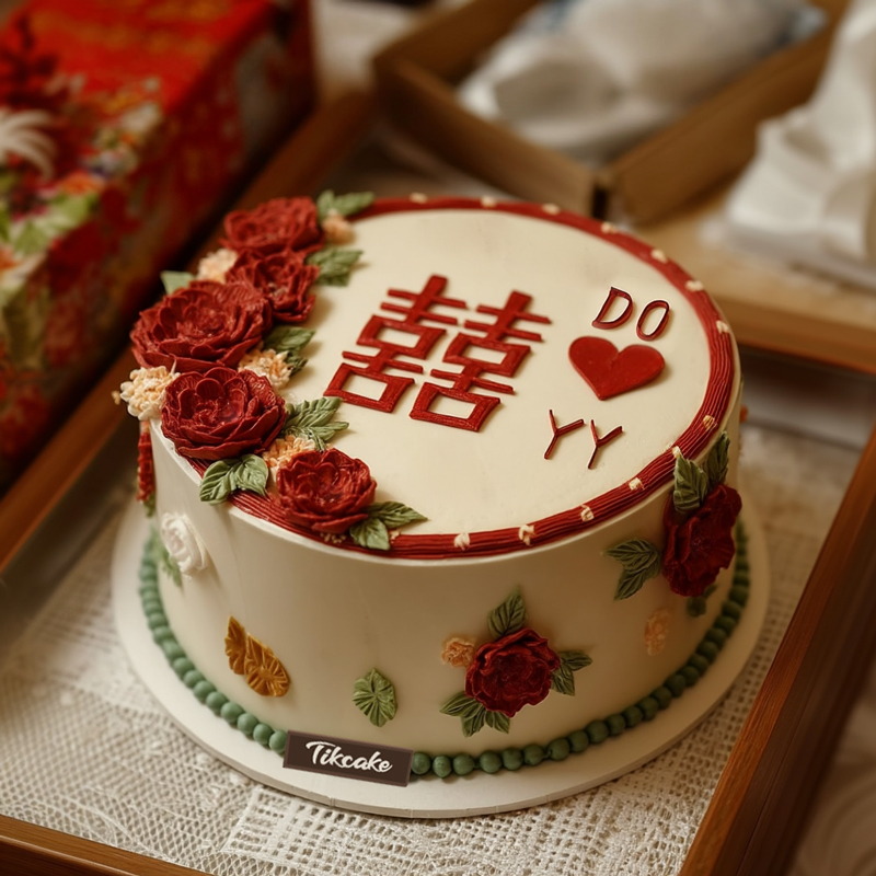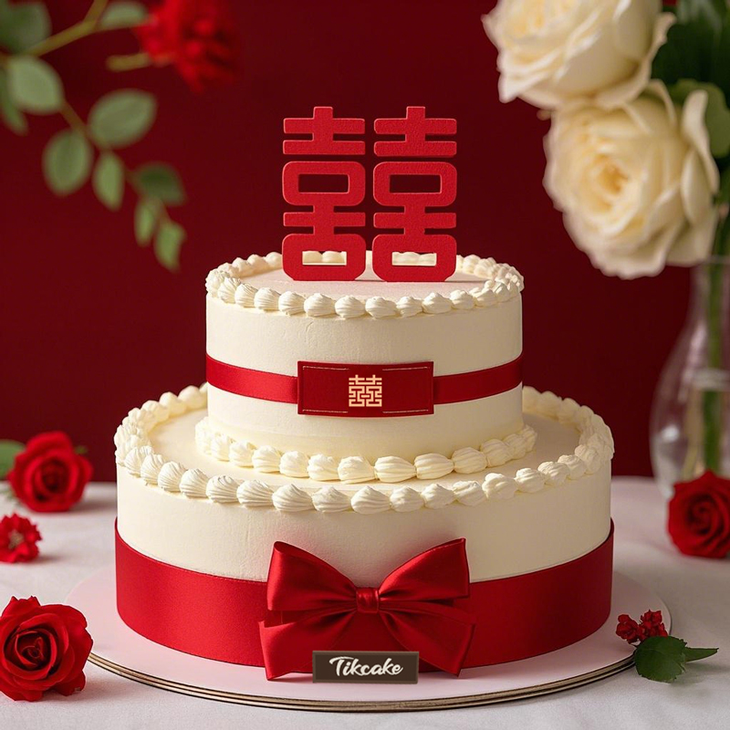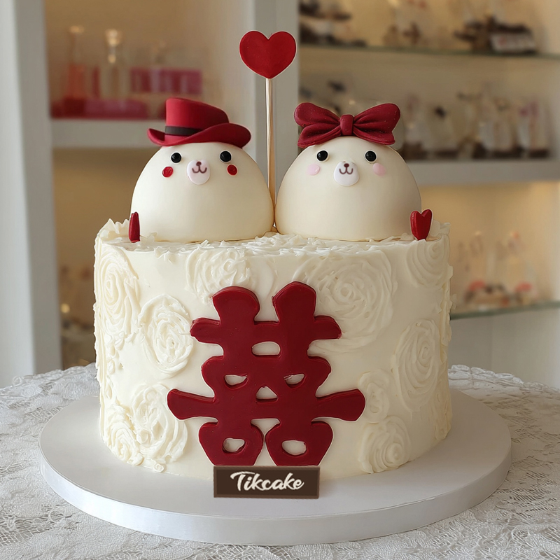 原创双层婚庆主题翻糖鲜奶蛋糕